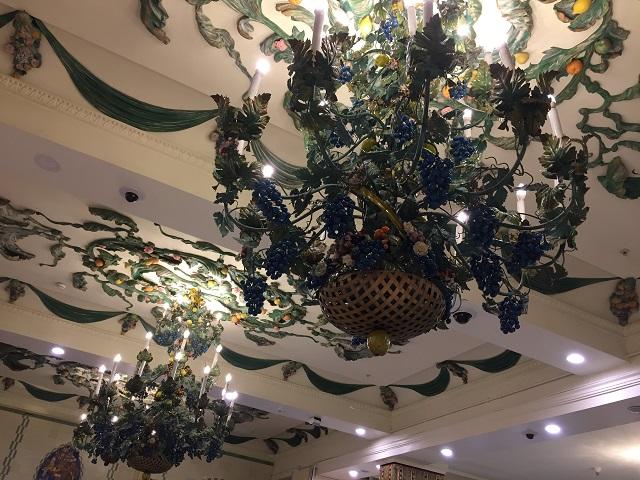 青果コーナーには、葡萄などの果物で飾られたシャンデリア。ひとつひとつが「やり過ぎでしょ!」というレベルで、見ていて実に感心しちゃいます。^^