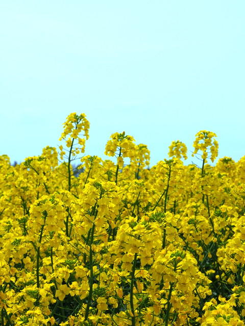 菜の花畑は、曇り空のほうが輝くような黄色がくっきり見える気がします。