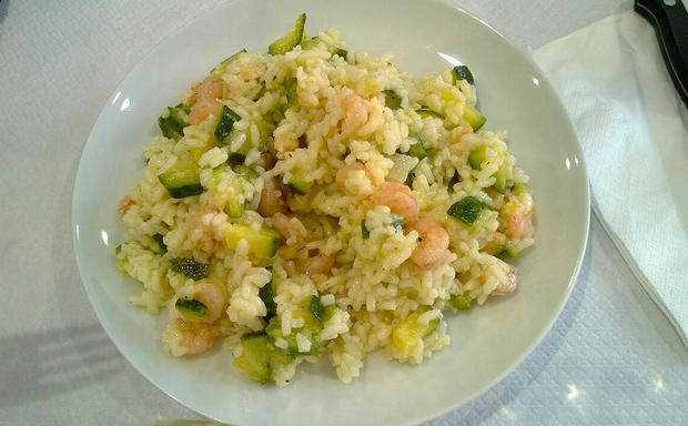 ↑ こちらは海老とズッキーニの冷たいご飯です。暑い夏にぴったりの食べ物です。