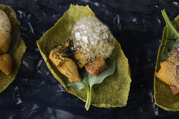 料理はアジアと南アメリカの料理をベースとしたもので、「Sea Unchin」(210香港ドル)は海苔と一緒にポン酢で食べると言う日本料理からインスパイアされたものです。一番のお勧めは「Seafood Platter」(時価)は、オイスター、エビ、ロブスターなどの盛り合わせです。ドリンク類では、ペルーのお酒である「ピスコ」(120香港ドル)などあまり日本人にはなじみがないアルコールも飲む事ができます。