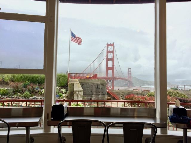 曇っているけど、ここからはゴールデンゲートブリッジよく見えるわ。