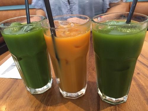 まずはフレッシュジュース。青汁系(きゅうりとほうれん草?だったかと)、にんじん+ジンジャー。