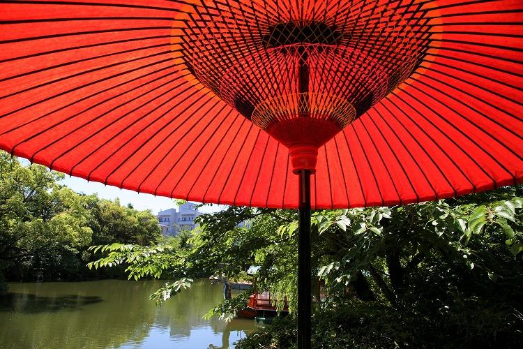 朱塗りの法成橋に、願い事を念じながら渡ると、願いが叶うと言われ