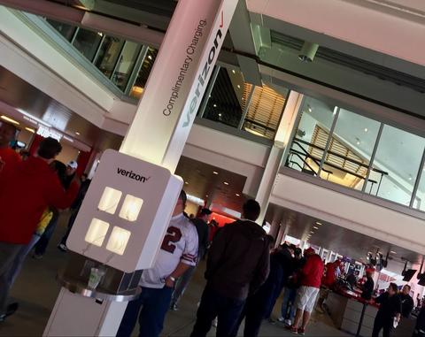 各柱にあると言っていいほどある。 ベライゾン(Verizon)のバッテリーチャージスポット。