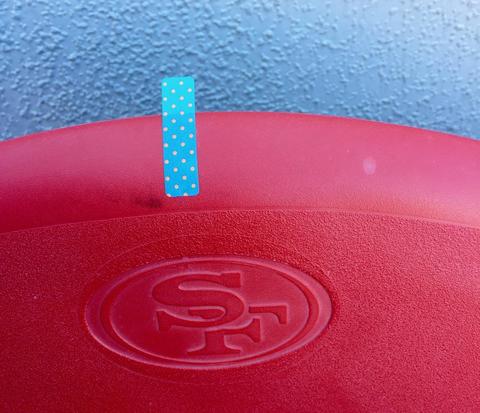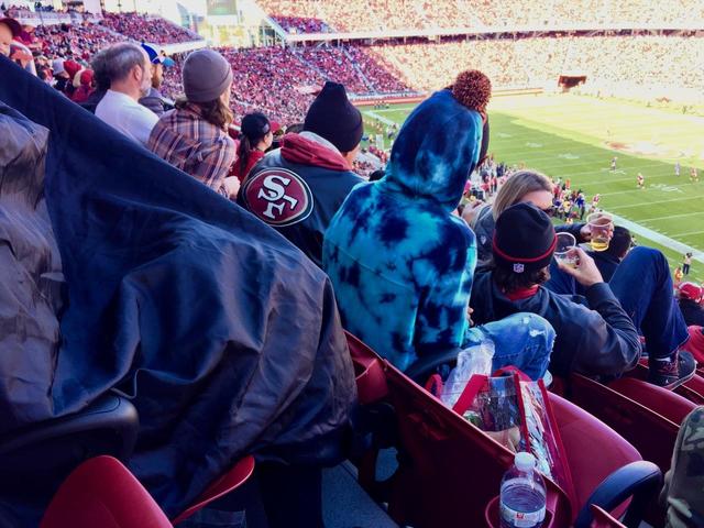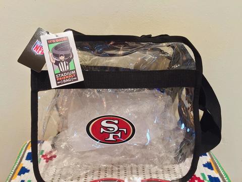 スタジアムに入る際はクリアバッグに道具を入れていかなければならない。 大きさも決まっていてバックパック等は持ち込み禁止。 市内のスポーツショップにも売っていたけど、いい値段だったので家にあるクリアバックに道具を入れてセキュリティーをクリア。 しかしスタジアム内では自身がものすごく侘しさを感じた。 清水の舞台から飛び降りたつもりで、49ersロゴ付き透明ショルダーバック($19.99)を買った。 トリミングは赤と黒があって迷うことなく黒を選んだ。 理由は49ersのロゴ部分がスティッカーになってはがせるので、今度オークランドレイダース観戦の時ははがして “黒&シルバー” チームカラーのレイダースのスティッカーに変える、一石二鳥のアイディアだ。 高級品や限定版は印刷など改造不可能なのでお小遣いギリギリのベイエリアNFLファンには朗報だ。