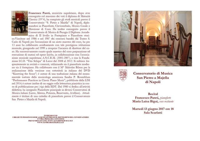 さて、今回のナポリ滞在の本当の目的は、恩師、マエストロ・フランチェスコ・パレーティ、ピアノリサイタルが母校のナポリ国立音楽院で行うためでした。