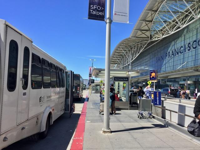 国際線ターミナルのど真ん中がシャトルの乗降場所なのでここで下車。 空港から周辺主要ホテルもシャトルバスがあるかどうかは予約の際は確認してみよう。 概ね15〜20分毎にバスは回ってくる、当初30分間隔とか聞いていたけど短くてよかった。 市内中心のホテルはコンベンションがあると値段が跳ね上がるので、チョイスとして空港周辺ホテルも考慮しておくといいかも知れないね。 いくつかのホテルを兼任しているシャトルバスなので降りる時は間違えないようにしたい。