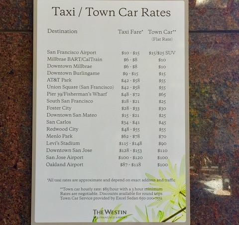 参考までにタクシーやリモの料金も掲示、タウンカー(黒塗りリモ)は料金決まってるから安心かもしれない。