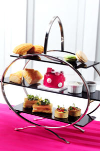 "香港にあるカフェ"ですから、やはりここは「Afternoon Tea Set」(2人用160ドル)から紹介したいと思います。3段のトレーにミニカレー、クロワッサン、キッシュ、マカロン、メレンゲなどが載せられています。見た目よりもしっかりと食べられる料理です。「Penne With Prawns」(152ドル)はエビ、スライスしたトマトにトマトソースで味付けしたものです。「Seared Salmon Steak」(168 ドル)は鮭のステーキですが、ハーブなどが載せられているので香りも楽しめます。