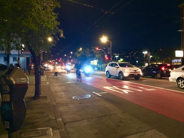 ミッション通りのMUNI#14バス(路線バス)完全に渋滞に巻き込まれ…。 右側はバス専用レーンなので本来は渋滞に巻き込まれる事はないのだけどね。 やや無法地帯気味になってきてた。
