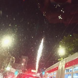 なんと道路から花火が上がり始め、白い煙も見えた。