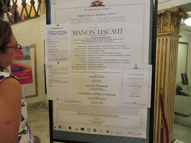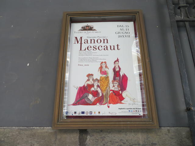 そんな中、せっかくナポリへいるのだから、サンカルロ歌劇場は今何をしているのかしら?とサイトで調べてみたところ、プッチーニのマノン・レスコーがちょうど行われるということでしたので、さっそく行ってきました!
