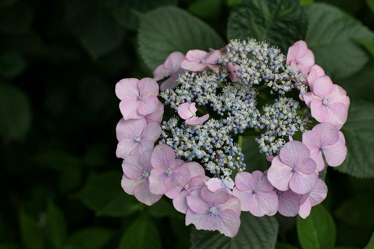 「ガクアジサイ」は、周辺の装飾花が中央の細かな花を