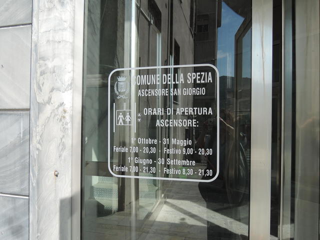 サンジョルジョ城行きのエレベーターに乗ります。(こちらのエレベーターも無料です!)