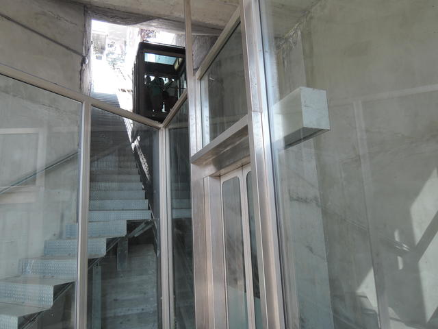 透明になっているモダンなケーブルエレベーター!なかなか景色もいいですよ!