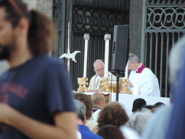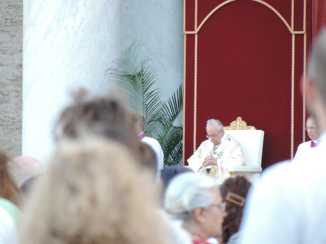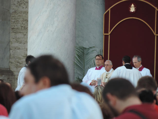 ↑ 聖堂の方を見てみると、ローマ法王が見えました。聖体の祝日の正しい定義と、教皇がミサでお話になられた内容について、下部に引用します。(バチカン放送局より)