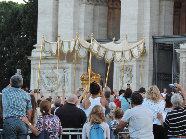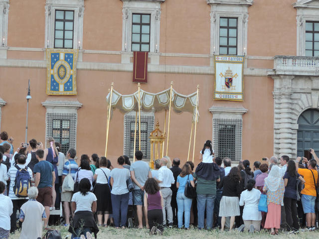 ローマ法王が、”キリストの聖体(コルプス・ドミニ)”を祝う伝統的な行事を、サン・ジョヴァンニ・イン・ラテラーノ大聖堂にて執り行われました。”コルプス・ドミニ”は、カトリックが主流のヨーロッパでは大切な宗教儀式の一つとなっています。聖体の祝日は移動祝祭日で、教皇庁(バチカン)の暦では、”三位一体の主日”のすぐ後の木曜日または日曜日に祝われます。今年はこのキリストの聖体の行事(ミサ、聖体行列、聖体降福式)は6月18日(日)に行われました。ミサから聖体行列の途中辺りまで見ることが出来ましたので、その様子をお届けします!