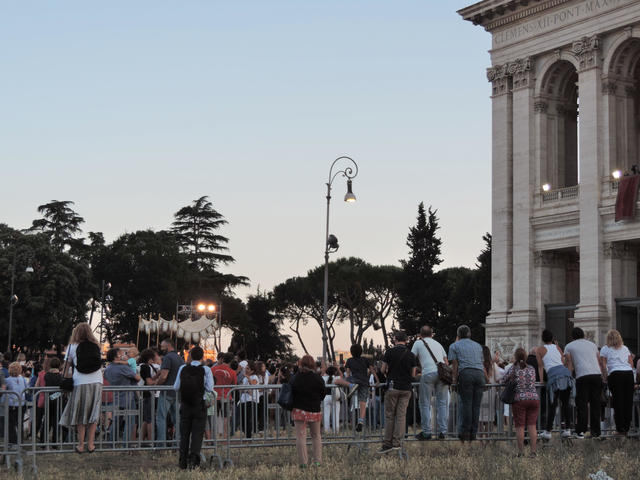 ↑ ローマの四大聖堂の一つ、サン・ジョヴァンニ・イン・ラテラーノ大聖堂(Basilica di San Giovanni in Laterano)です。19時から開始でしたので、18時30分頃に到着した時の様子です。もう多くの人がいました。19時を少し過ぎた頃から、ミサが始まりました。
