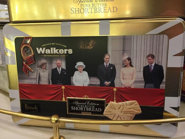 その点ビスケットやショートブレッド(濃厚バターのビスケット)なら安心かな?ハロッズには高級品がひしめく中で、このウォーカーズ社という安心価格ブランドのショートブレッドなんかも並んでますよ。