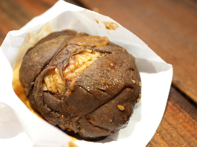 エゾシカ肉メニューの中から、今回選んだのは「エゾシカの肉巻きおにぎり」(200円)。