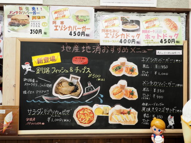 エゾシカバーガー(450円、阿寒湖畔でですが食べたこと有り)、