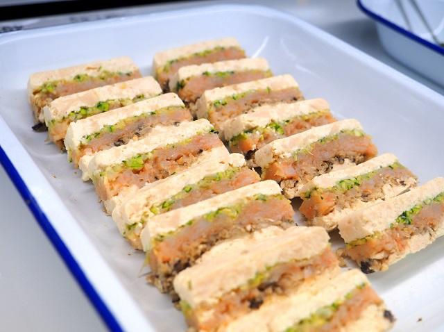 「鶏むね肉と豆腐の4食ミルフィーユ」(492円/100g)
