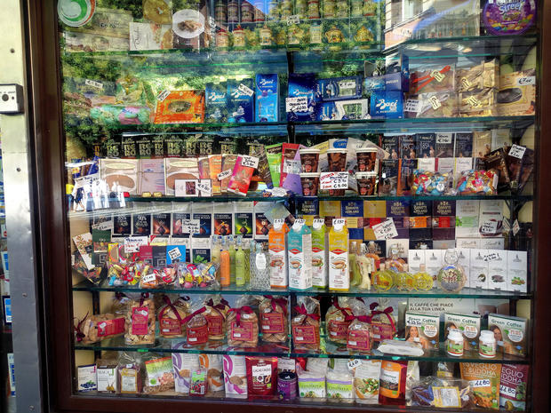 ↑ このオッタヴィ―アーノ店で売られている食材です。代表的なイタリアのお土産が沢山見えます。
