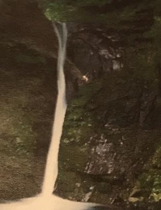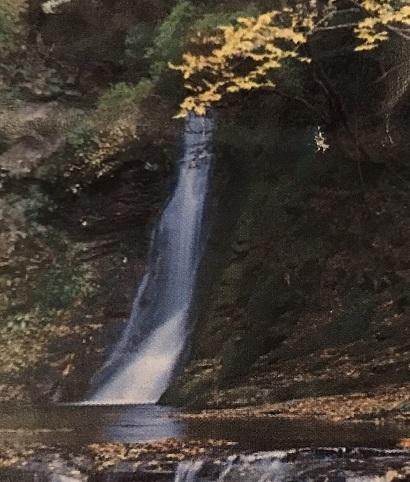≪布曳滝≫ 高さ30m。一条の布をかけたように流れ落ちる滝。滝壺は約30m。