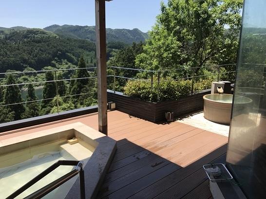 ハイキングの後は、青蓮寺湖を望むロケーションで、温泉に。
