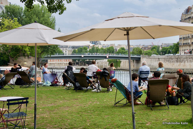 セーヌ川に浮かぶシテ島からパリの歴史が始まったように、今も昔もセーヌ川はパリの中心。その両河岸は、今まで自動車専用道路として使われてきましたが、2013年から左岸の一部(オルセー美術館〜アロマ橋)が公園に、そして今年4月からはパリ市庁舎前を中心とする右岸部分(シュリー橋〜ポン・ヌフ)も公園になりました。つまり車を気にせずゆっくり散歩できる、セーヌ河岸の範囲が増えました。