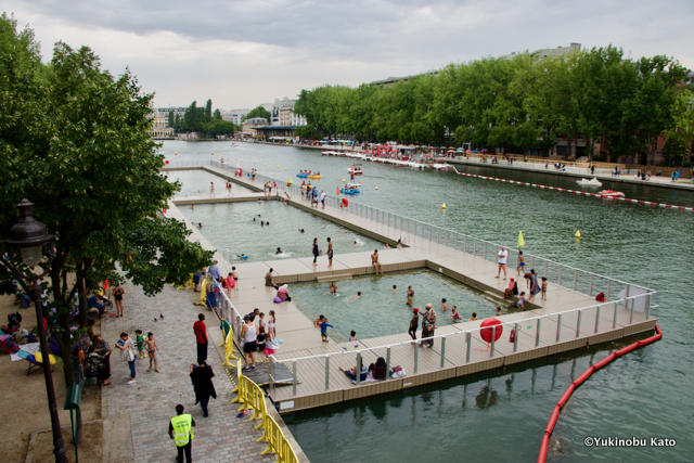 砂がないのは残念ですが、新たな取り組みも始まっています。ラ・ヴィレット地区のパリ・プラージュでは、運河にある貯水池内にプールが設けられ、泳げるようになっています。以前からイダルゴ市長は、セーヌ川を浄化し昔のように泳げるようにしたい、と発言してきました。それが実現された形です。