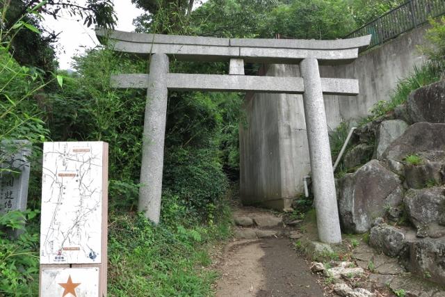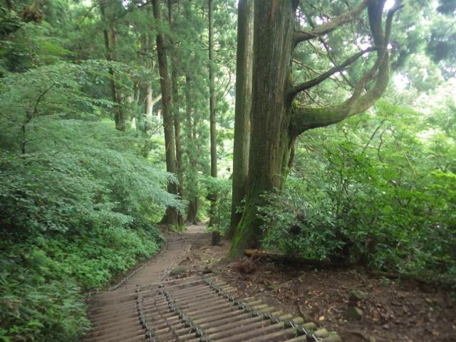杉の巨木が目に留まる境内を過ぎ、登山道へ