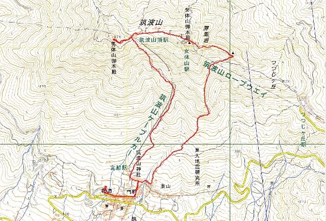 ルートは、筑波山神社から白雲橋コースを登り、女体山&男体山と巡って御幸ヶ原コースを下ります。