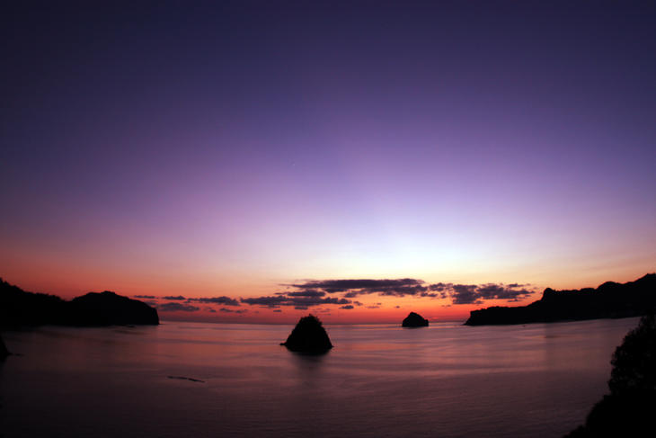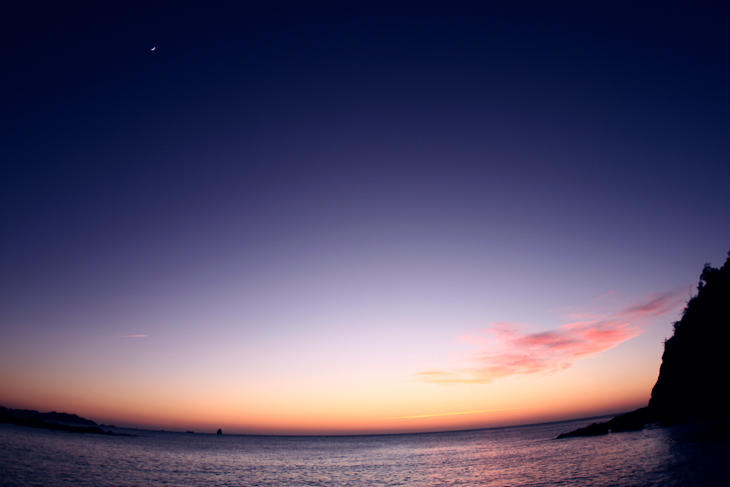 もしも時間に余裕があれば、太陽が雲に入ったあとも、あるいは水平線に沈んだあとも、もう少しだけ空を眺めてみるのもおすすめです。オレンジ色の空が少しずつ紫色に変わり一番星が見えてきたりします。