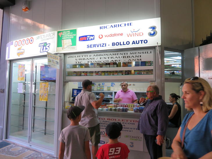 入口左右にあります売店Edicola(エディーコラ)でフニコラーレ・チェントラーレの切符が購入できます。