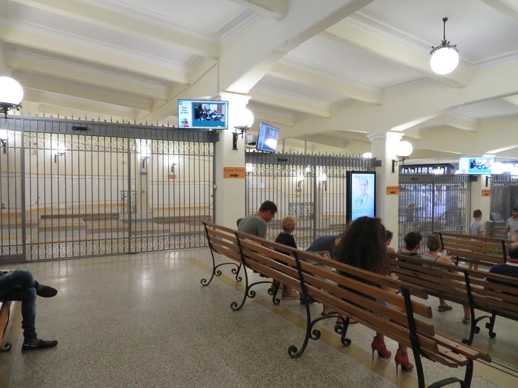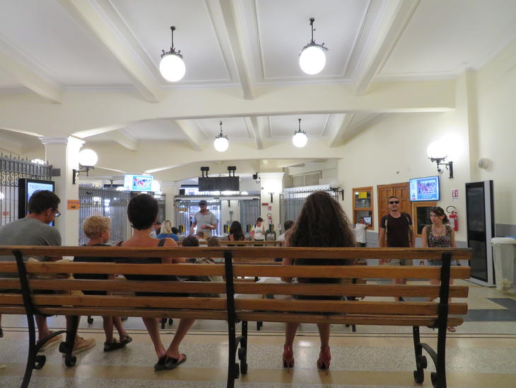 中に入り木の椅子に座りました。なんとも品のある駅でした。