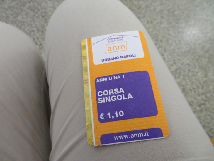 こちらが一回券の切符(1,10ユーロ)!ナポリ市内のメトロ1、バスでも使えます。
