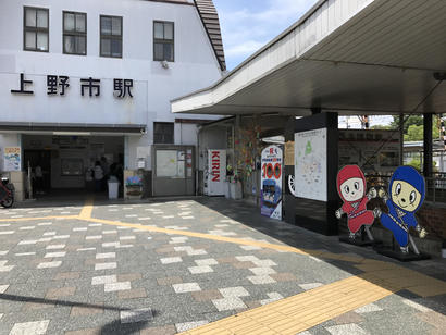 伊賀線・上野市駅の写真(電車は、「銀河鉄道999」の松本零士氏の描く忍者の絵)