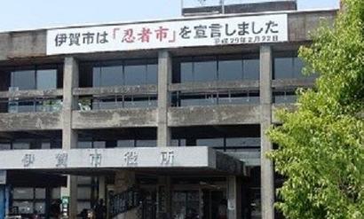 (伊賀市は「忍者市」を宣言しました。)の横断幕が掲げられています。