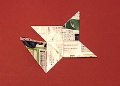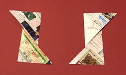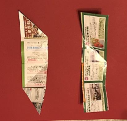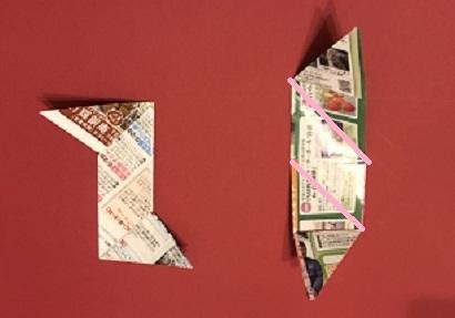 (④・・・さらにピンクの斜め線を内側に折り込みます。左はその完成品。)