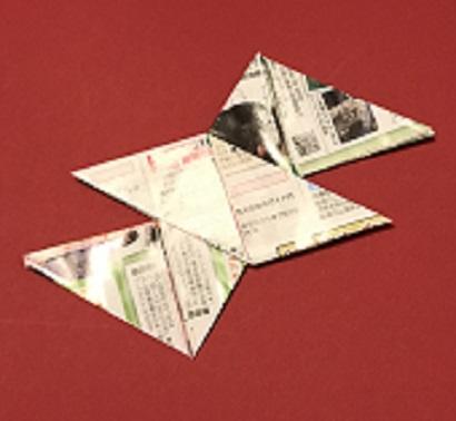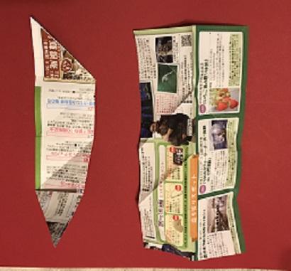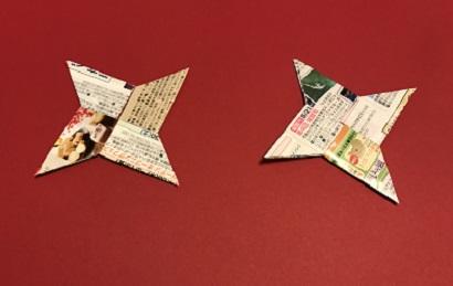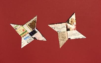 忍者博物館に行く前方にある受付口付近で、地元の広告を折り紙にした手裏剣をふたつ頂きました。