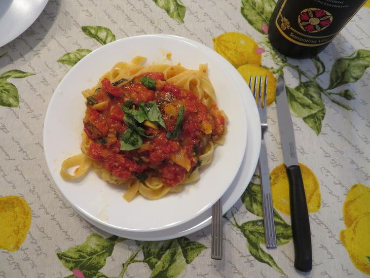 お店の人がトマトと和えると美味しいですと言われましたので、取れたてのトマト入りのパスタを作りました!