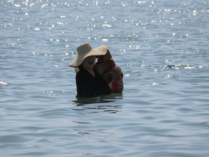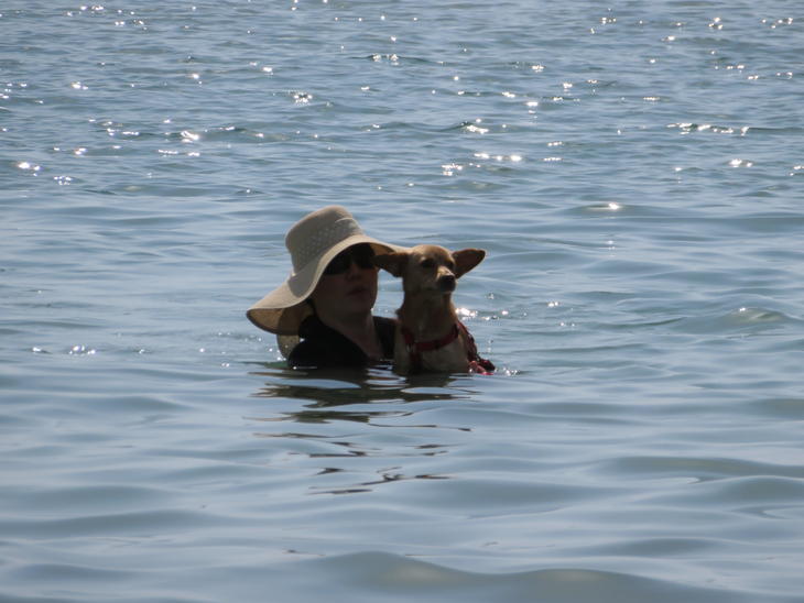 海へ入る時には少しごねましたが、抱きかかえながらゆっくりと入り、自然に犬かきをしていました!