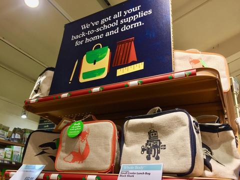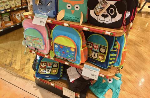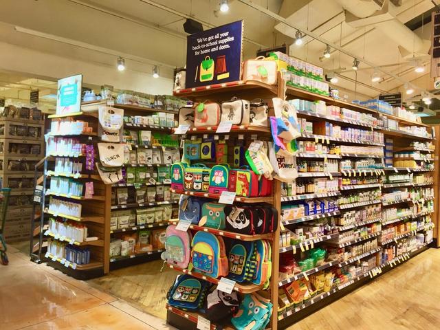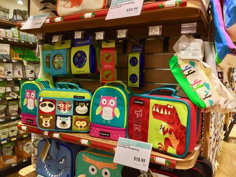 入り口直ぐに、ローションやビタミン剤、雑貨などのコーナーがある。 公立学校は来週から新学期で今週末はお母さん達が準備で大忙しなようだ。 スティショナリー(文房具)が最も売れるこの時期、合わせてランチバックお弁当を入れるバックも新調したい思うかも?