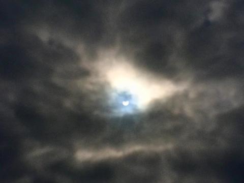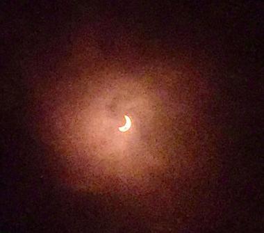 日食を見るための眼鏡を持っていないので諦めていたんだけど、雲のおかげでぼんやりと丸くないお日様の形が見えた! テレビでは「サンフランシスコは少し雲が出るので、曇っていない内陸部、高い場所は建物の影にならないので観察するにはいいでしょう」 いやぁ〜曇っていたおかげでちょっと見えた。
