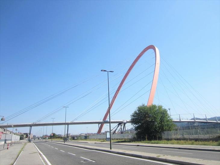 鉄道でTorino Lingotto 駅に着いたら、上空を見渡し線路に架かる虹のように伸びた美しい橋 Passarella olimpica (パッサレッラ オリンピカ)を見つけましょう。そこを渡っていきますよー。