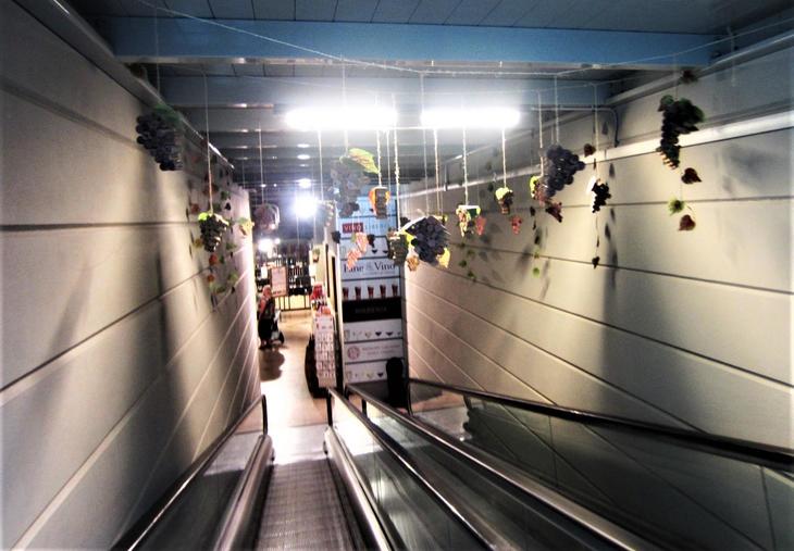 地下へ行ってみましょう。エスカレーターを降りていくと、ワインコーナーがあり、その先には、