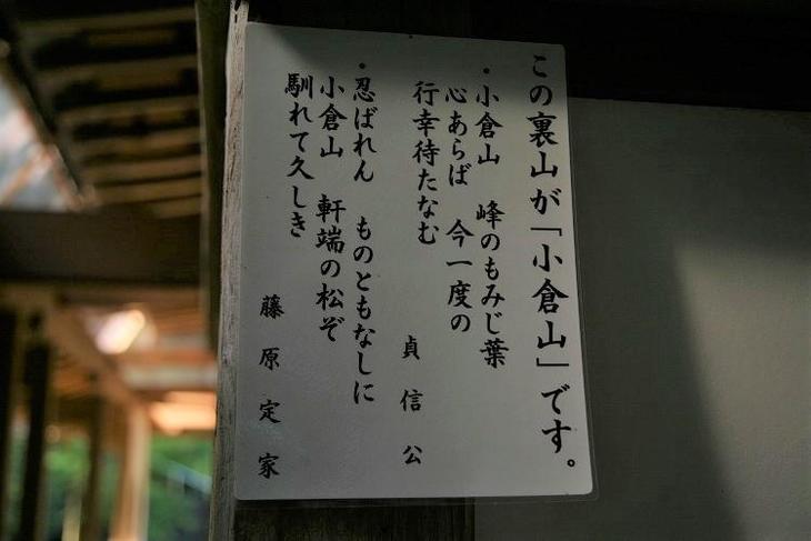 『忍ばれん ものともなしに 小倉山 軒端の松ぞ 馴れて久しき』