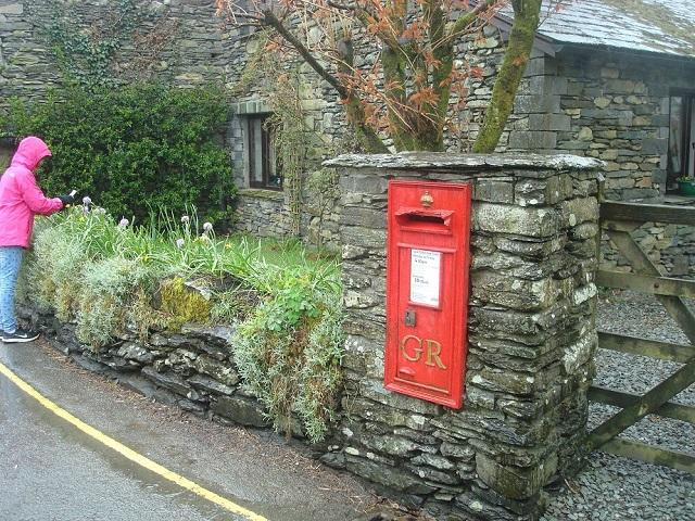 湖水地方の村で見かけた、この可愛いポストには「GR」とだけ刻んであるので、ジョージ5世(1910~1936年)のもの。この後にはエドワード8世のEⅧR(シンプソン夫人と駆け落ちしちゃったので1936年のみ・笑)と、映画「王様のスピーチ」でも有名になったジョージ6世のGⅥR(1936~1952年)が続きます。
