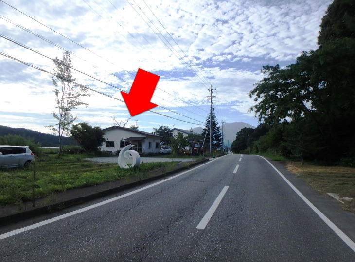 左に写っているのが白ほたる豆腐店で正面に見えるのは浅間山です